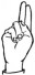 На ћирилици написано КОСТА ЈЕЛЕНКОВИЋ састоји се из 15 слова [?]. Исписано ћириличном једноручном азбуком за глувонеме: